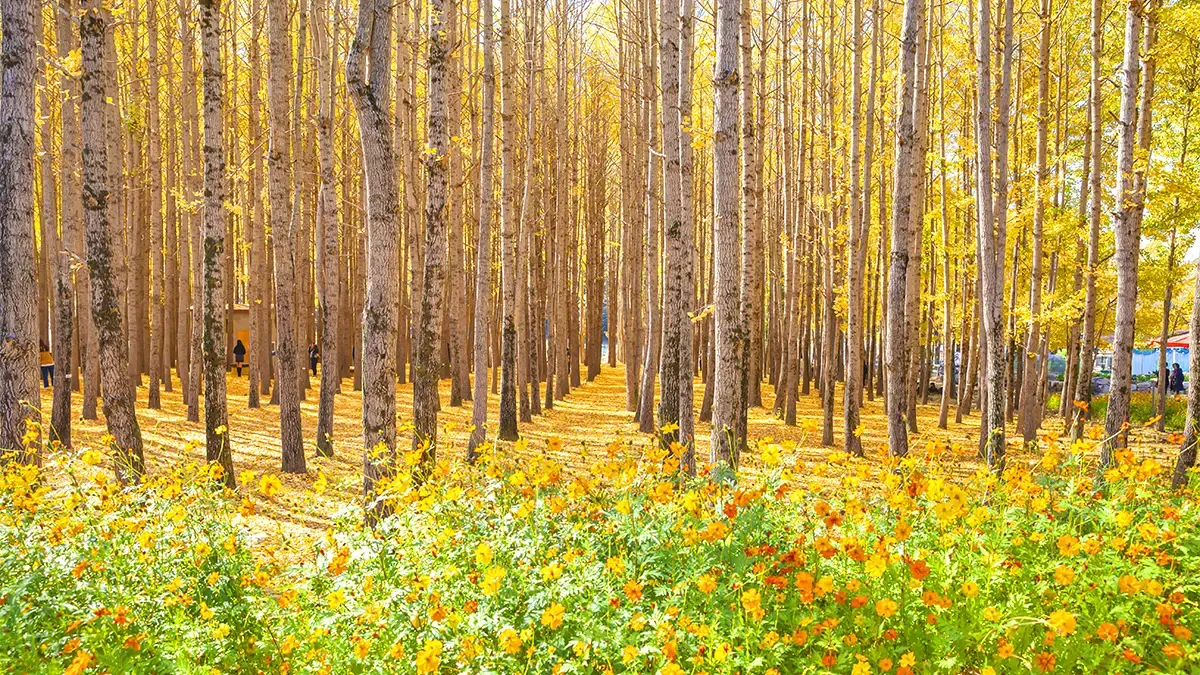 - 숲 전체가 마치 금빛으로 뒤덮인 장관을 연출